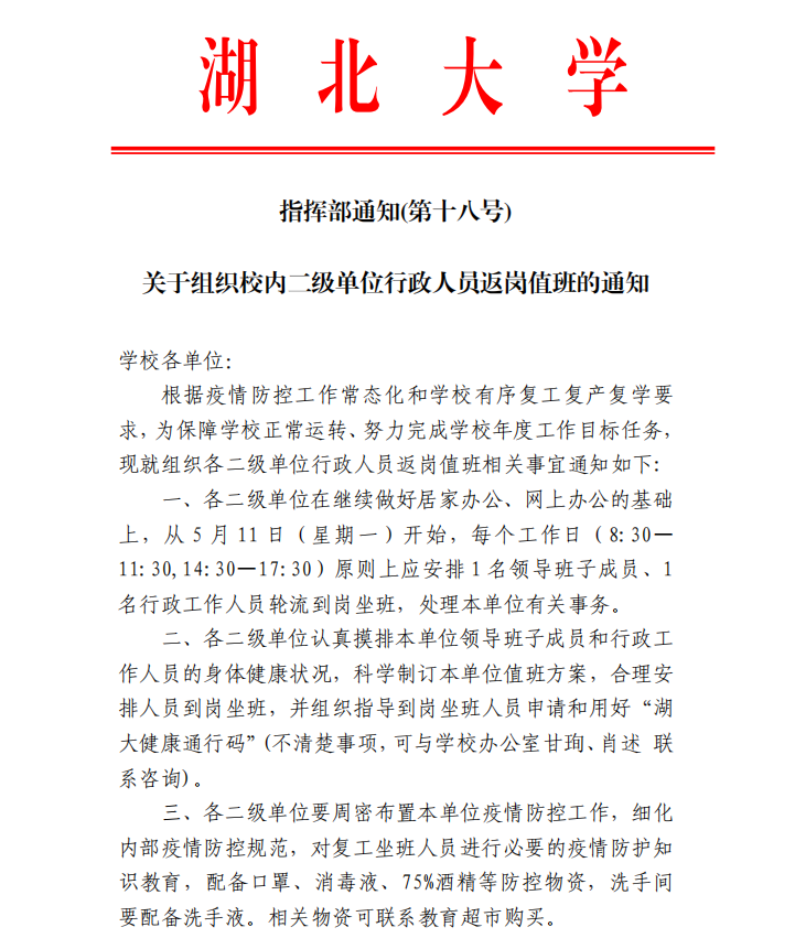 來源:湖北大學(xué)疫情防控指揮部 作者: 編輯:鮮文濤 時間:2020-05-08 字號: 【大】 【中】 【小】
