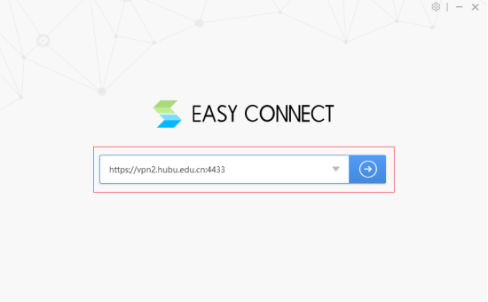 4、安裝完成后,打開軟件名為“湖北大學”的VPN客戶端,在服務器地址欄輸入我校VPN地址:https://vpn2.hubu.edu.cn:4433,點擊右側箭頭進入下一步。