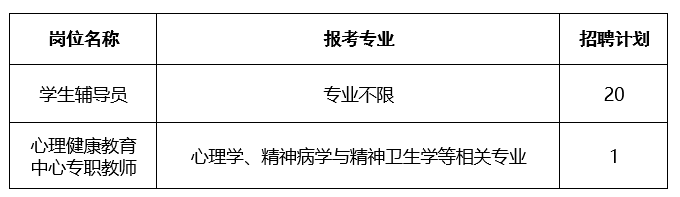 根據(jù)學校事業(yè)發(fā)展需要,現(xiàn)面向社會公開招聘學生輔導員、心理健康教育中心專職教師。