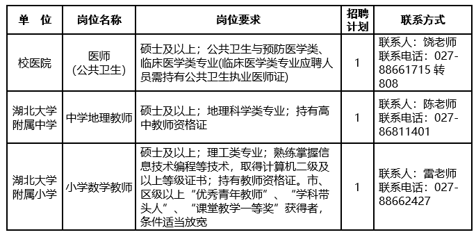 聯(lián)系電話:027-88663285(人事處)